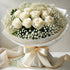 A timeless bouquet of 12 fresh white roses, beautifully accented with delicate baby's breath. Wrapped in soft white fancy paper and tied with a satin ribbon, this bouquet symbolizes purity, elegance, and grace. Perfect for weddings, sympathy gestures, anniversaries, or any special occasion where you want to express love, respect, and heartfelt emotions.