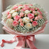 A breathtaking bouquet of 30 fresh pink and white roses, beautifully complemented by delicate baby's breath. Wrapped in luxurious soft pink and white fancy paper and tied with a satin ribbon, this bouquet radiates charm and sophistication. Perfect for birthdays, anniversaries, romantic gestures, or any special occasion where you want to express love and appreciation with elegance.